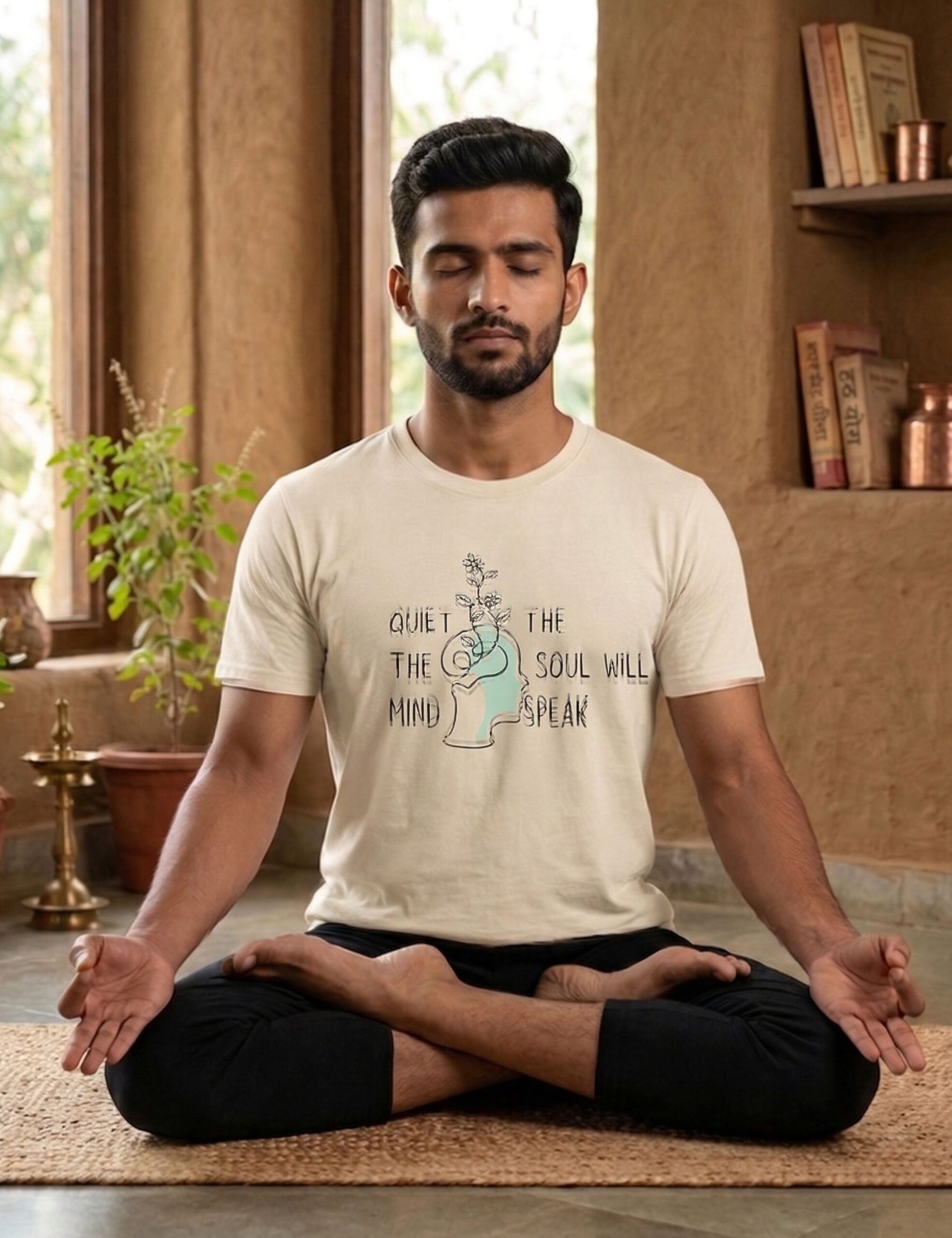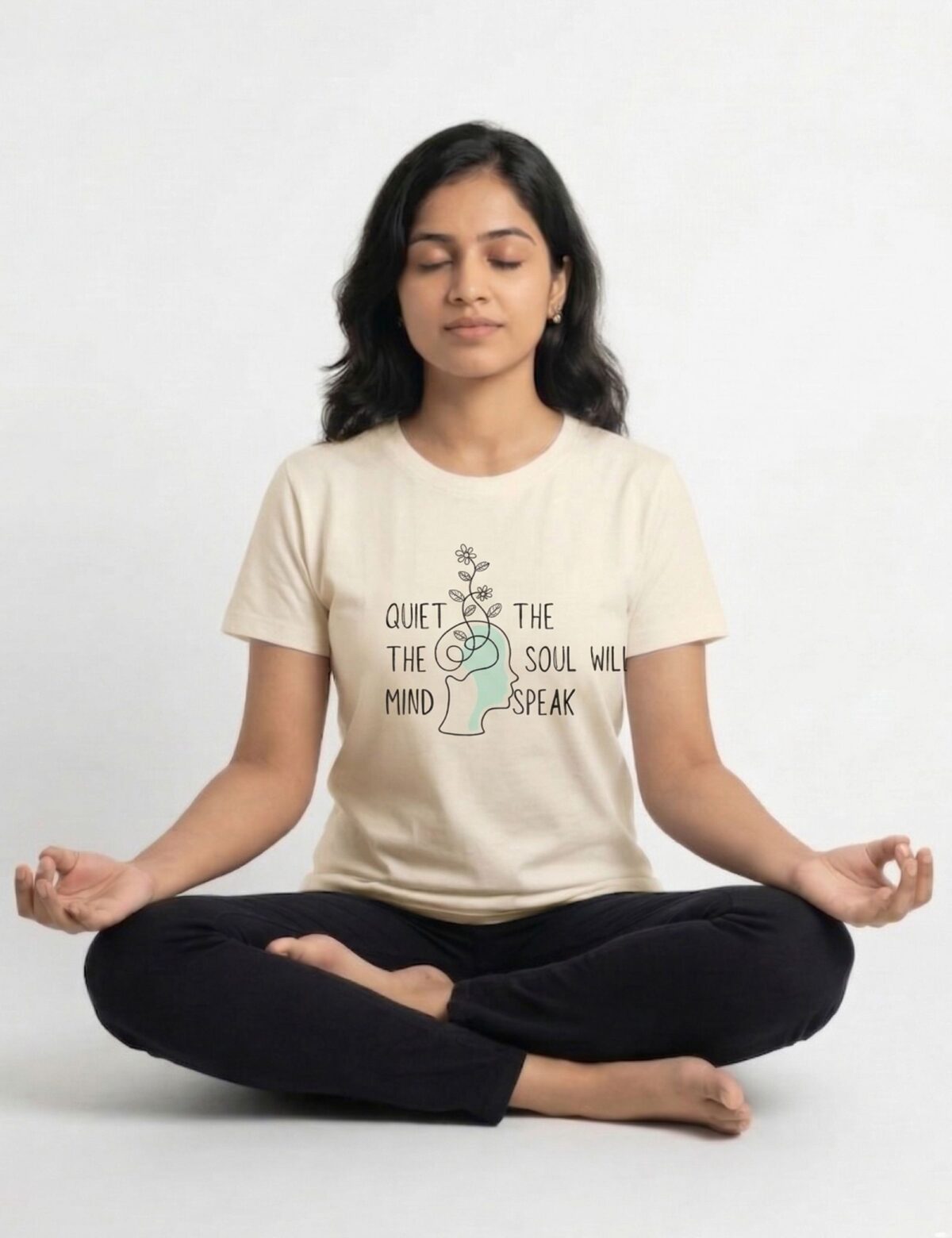 Be the first to review “‘Quiet The Mind, The Soul Will Speak’ Graphic Yoga T-Shirt” Cancel reply